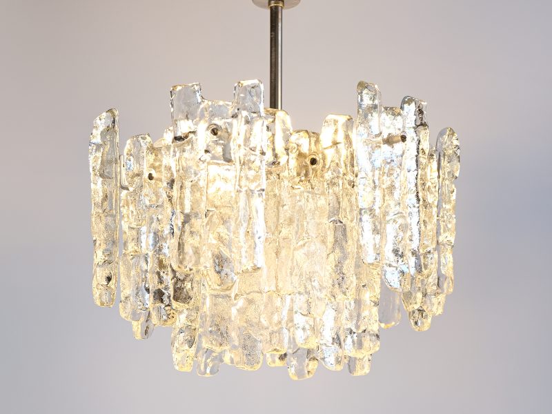 A fabulously elegant Mid-Century Modernist Austrian ice-glass & brass chandelier by J.T. Kalmar, dating from circa 1970. The chandelier, which was part of the ‘Sierra’ series, is a striking…