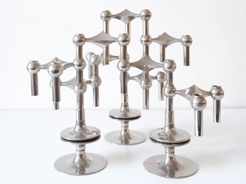 For sale a stunning set of chromed mid-century modernist stackable/modular “NAGEL” candle holders, designed by Werner Stoff and commissioned by Hans Nagel for Gebrüder Nagel AG, Wesseling, Germany in the…