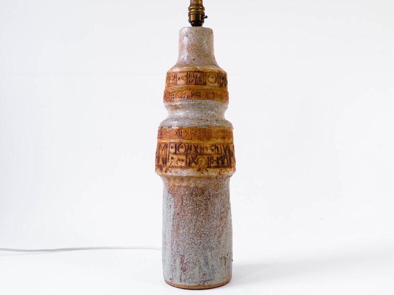 For sale a Vintage Mid-Century Bernard Rooke Brutalist Studio Ceramic Table Lamp base, produced in England, c.1960s/70s. This heavy, unmarked Stoneware lamp is in excellent vintage condition, commensurate with 50+…